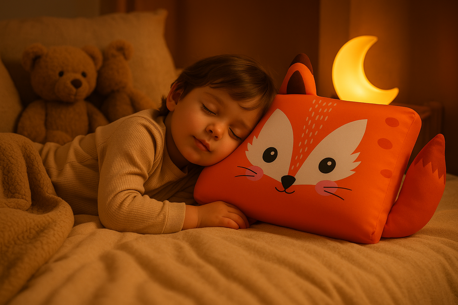 Huggy’s ergonomic kids pillow is specially designed to support healthy spinal development during sleep. The contoured shape cradles the head, elevates the neck, and supports the shoulders—promoting natural alignment and reducing pressure on growing joints.